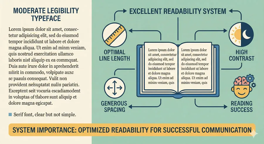 The distinction between legibility and readability is not merely academic. It has practical implications for every typography decision: