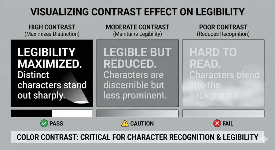 A: Color contrast is critically important. Inadequate contrast significantly reduces both legibility and readability. High contrast (dark text on light background) maximizes legibility.