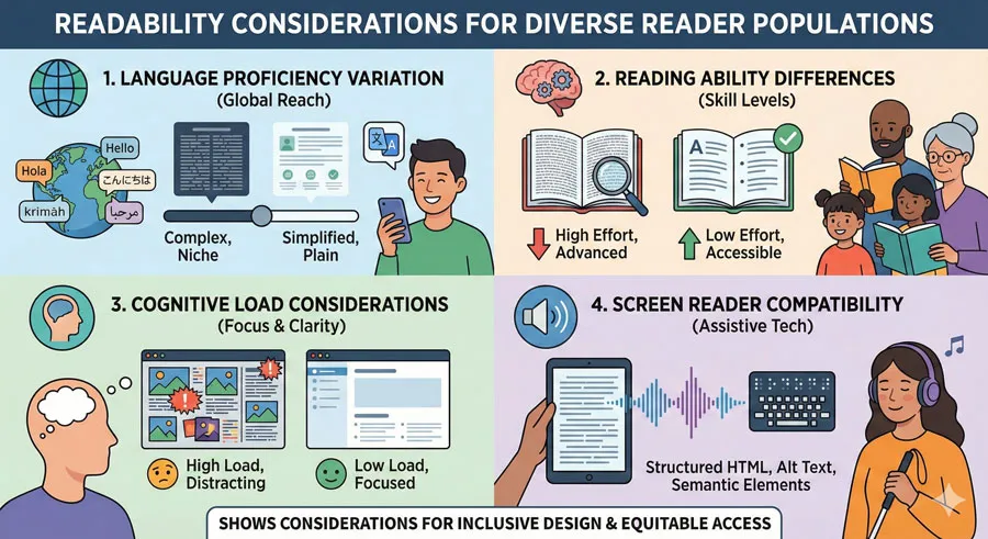 Readability considerations must account for diverse readers: