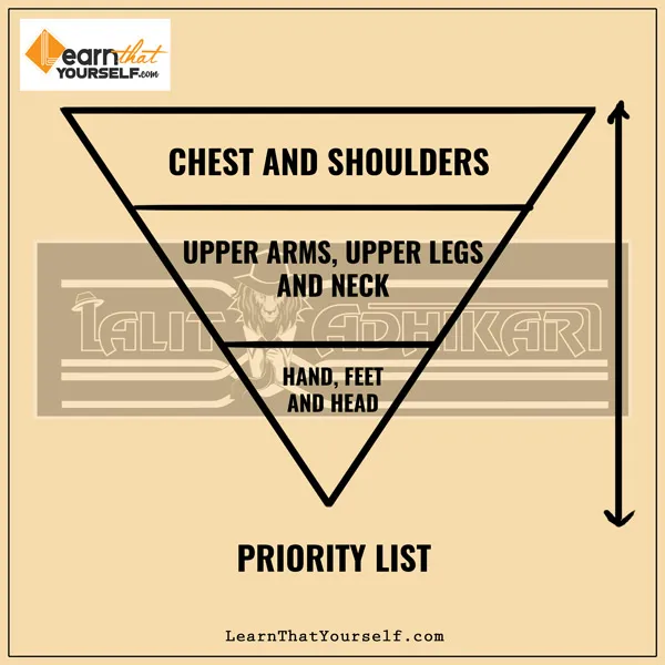 The first priority is the chest and shoulders: Because whenever we think of big muscular guys we imagine broad shoulders and biceps.