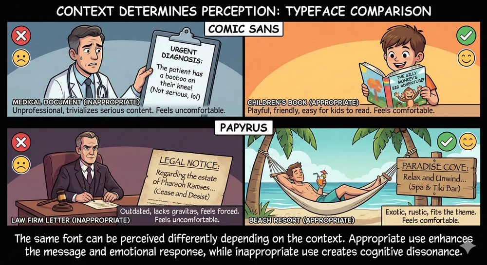 The psychology of “bad” fonts is really the psychology of contextual mismatchโthe typeface does not align with the psychological and cultural meaning of the content.