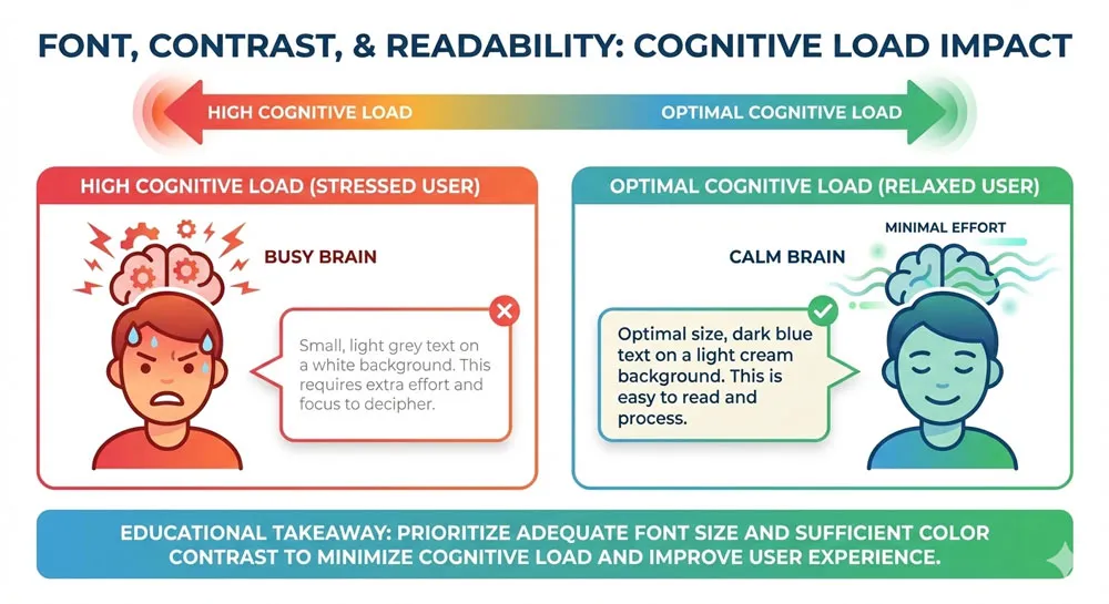 This efficiency has psychological consequences. When a typeface is easy to read and familiar, we allocate our cognitive resources to understanding the content rather than decoding the letterforms.
