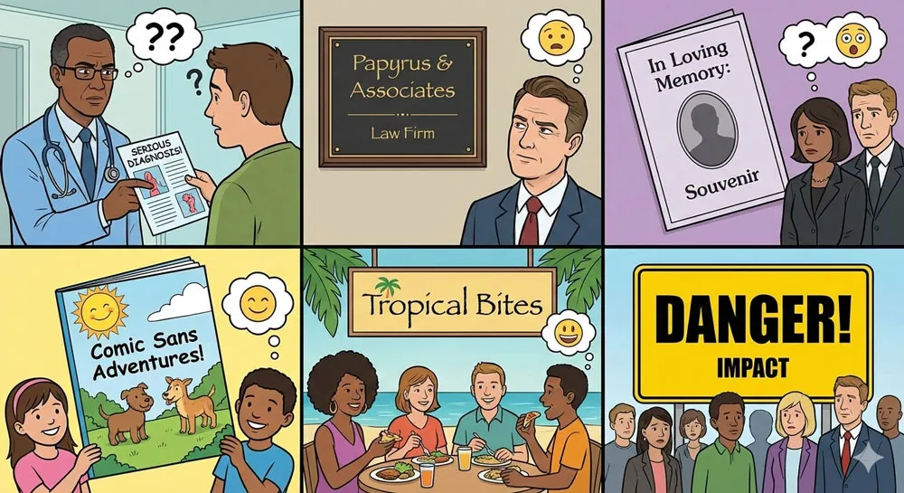In other contexts, this effect is entirely unintended and counterproductive, as when Comic Sans appears in a medical brochure, creating cognitive dissonance between the serious content and the playful typeface.