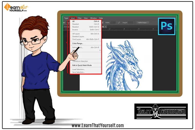In this blog, we will be discussing about the ‘Select menu in Photoshop‘. My name is Lalit Adhikari and we are at LTY. Let’s get started!