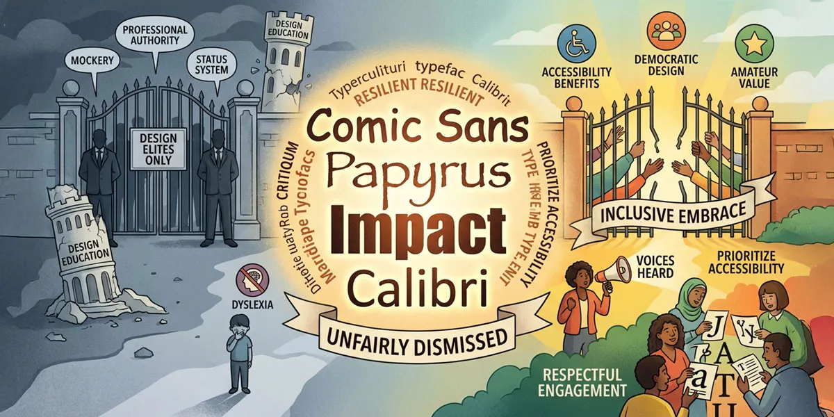 This comprehensive exploration examines the “worst fonts” phenomenon, analyzes design criticism versus gatekeeping, explores accessibility and functional design arguments, considers democratic design values, examines how dismissal operates within design culture, and ultimately asks: