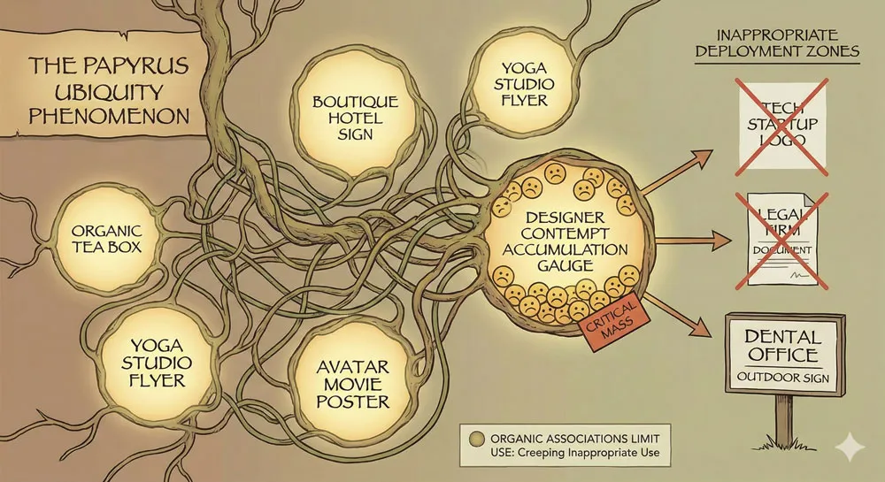 Overuse in appropriate contexts: More than Comic Sans, Papyrus has been deployed extensively in contexts where professional sophistication is required, leading to visible design failure and professional embarrassment.