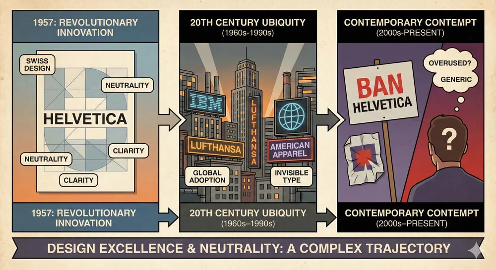 The Helvetica documentary effect: A 2007 documentary celebrating Helvetica’s influence triggered significant backlash, with designers and critics arguing that Helvetica’s dominance was precisely the problem in contemporary design.