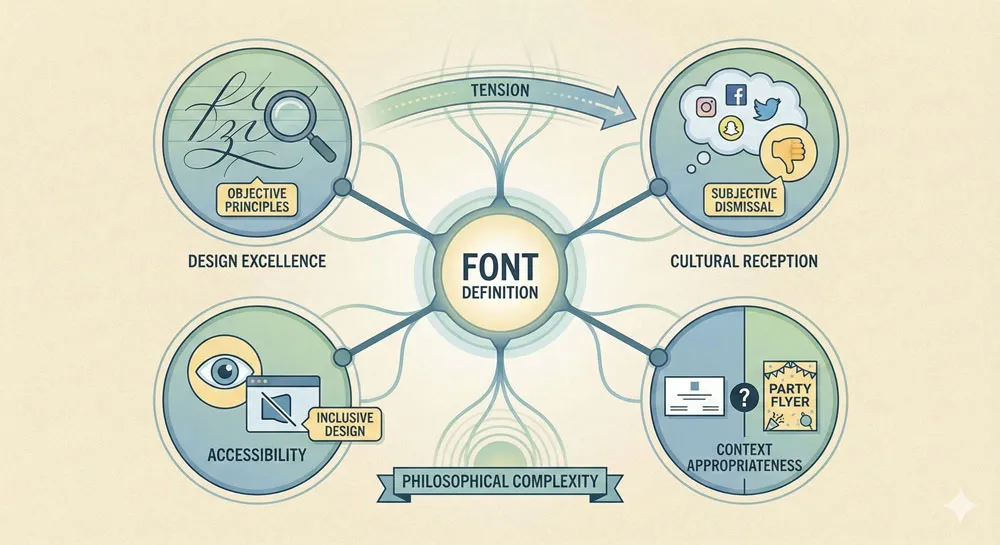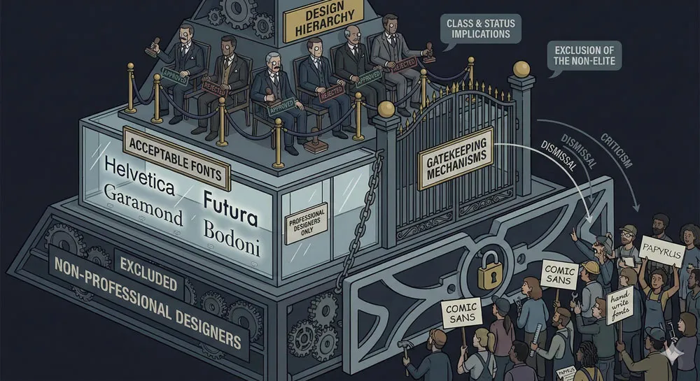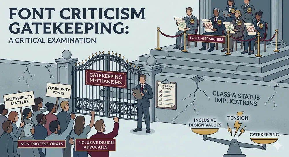 This gatekeeping dimension of font criticism raises important questions about whether design criticism is based on legitimate principles or on hierarchies of taste and professional status.