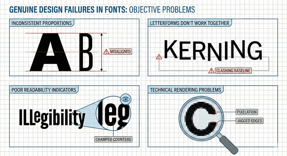 When a typeface has genuine design flaws, criticism is often legitimate and based on objective design principles.