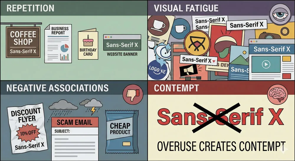 Some fonts are not inherently “bad” but have become despised through cultural overuse. When a typeface is deployed so extensively and so inappropriately that it becomes visually exhausting, designers and viewers develop negative associations with the typeface regardless of its design qualities.
